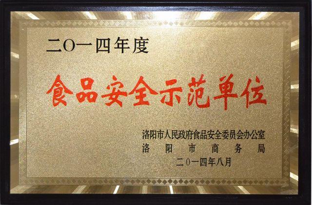 2014年9月3日下午,洛陽市召開創(chuàng)建食品安全示范單位現(xiàn)場推進(jìn)會(huì),洛陽市政府領(lǐng)導(dǎo)、相關(guān)委局負(fù)責(zé)人及食品安全示范單位申報(bào)企業(yè)參加了推進(jìn)會(huì),會(huì)上授予洛陽正大食品有限公司“食品安全示范單位”。