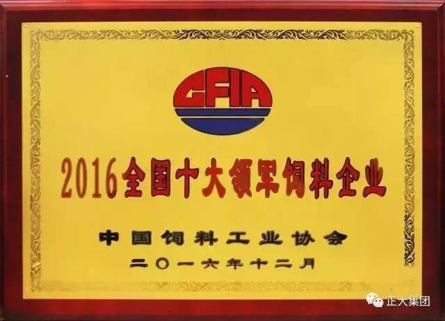 ▲正大集團(tuán)被中國(guó)飼料工業(yè)協(xié)會(huì)授予“2016全國(guó)十大領(lǐng)軍飼料企業(yè)”稱(chēng)號(hào)