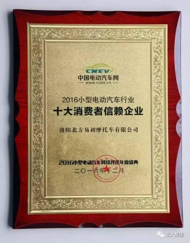 ▲洛陽(yáng)北易榮獲2016小型電動(dòng)汽車(chē)行業(yè)“十大消費(fèi)者信賴(lài)企業(yè)”