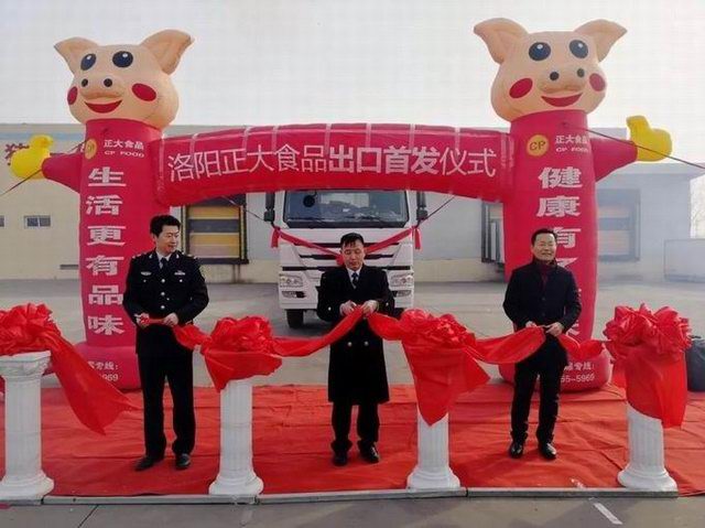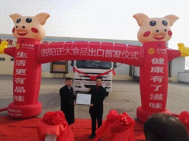 洛陽(yáng)正大食品出口香港的首車肉制品,