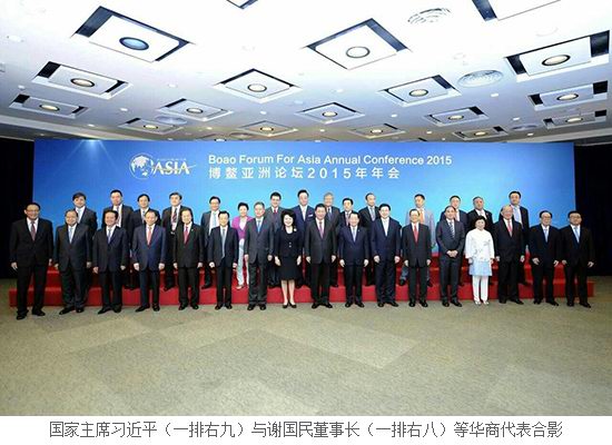 3月26-29日,博鰲亞洲論壇2015年年會(huì)在海南省博鰲舉行,本屆年會(huì)主題為“亞洲新未來(lái):邁向命運(yùn)共同體”。3月28日,國(guó)家主席習(xí)近平出席了年會(huì)開(kāi)幕式,發(fā)表了題為《邁向命運(yùn)共同體 開(kāi)創(chuàng)亞洲新未來(lái)》的主旨演講,并與正大集團(tuán)謝國(guó)民董事長(zhǎng)等出席博鰲亞洲論壇2015年年會(huì)的華商代表合影留念。